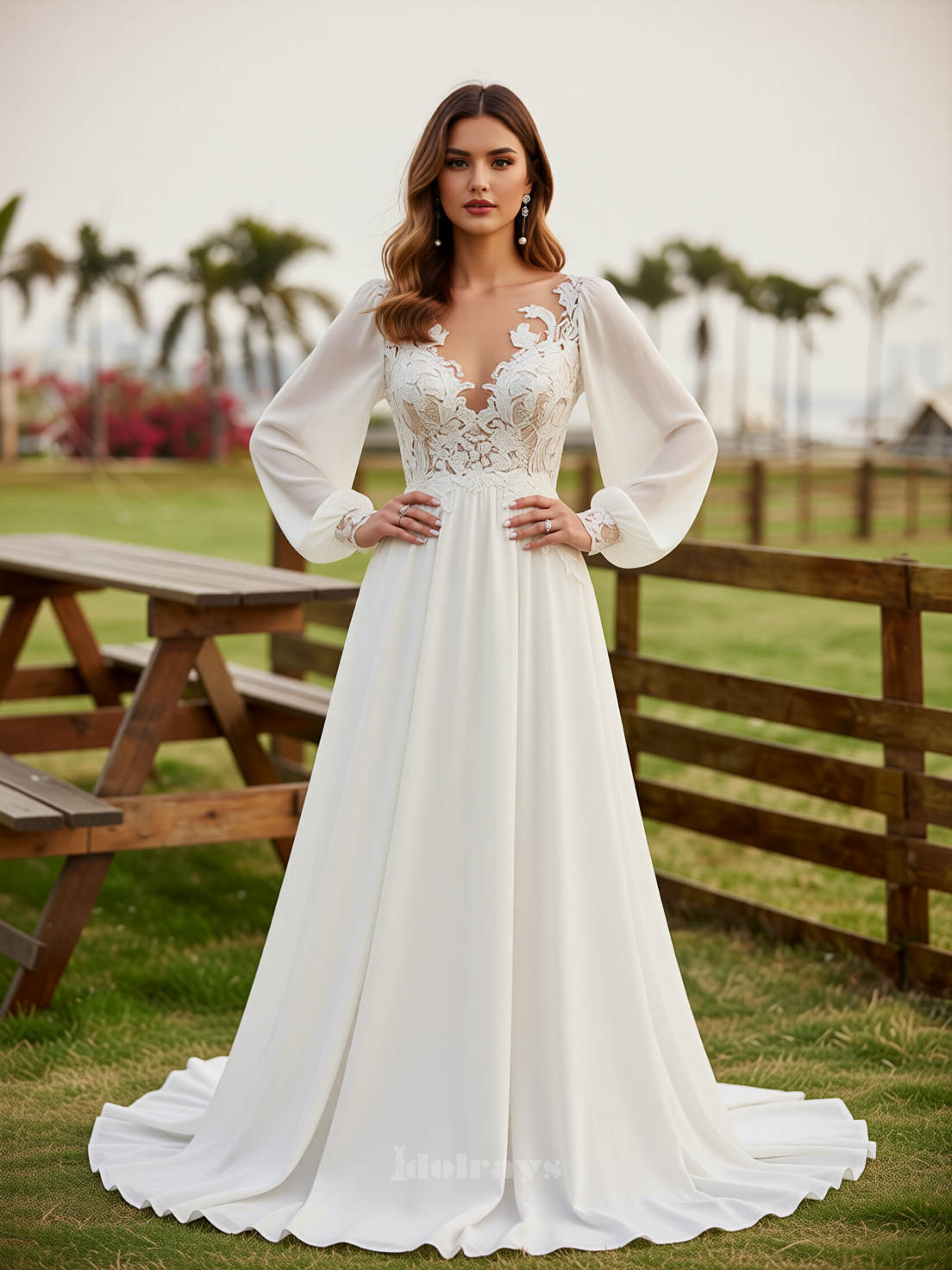 Majestic Chapel Train: Finished with a dramatic Chapel Train that sweeps behind you, guaranteeing a truly magnificent and memorable entrance.